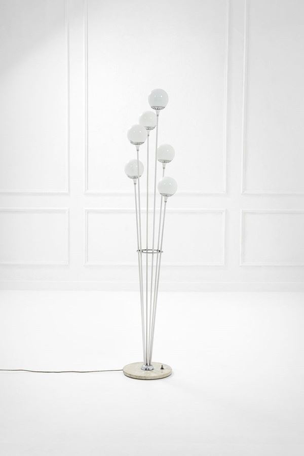 Metallo cromato, metallo laccato, vetro opalino, marmo.