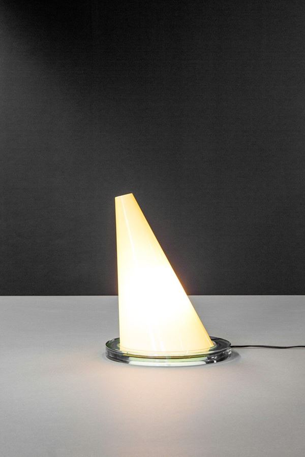 Lampada da tavolo mod. OzCristallo molato, vetro opalino.Prod. Fontana Arte, 1981
