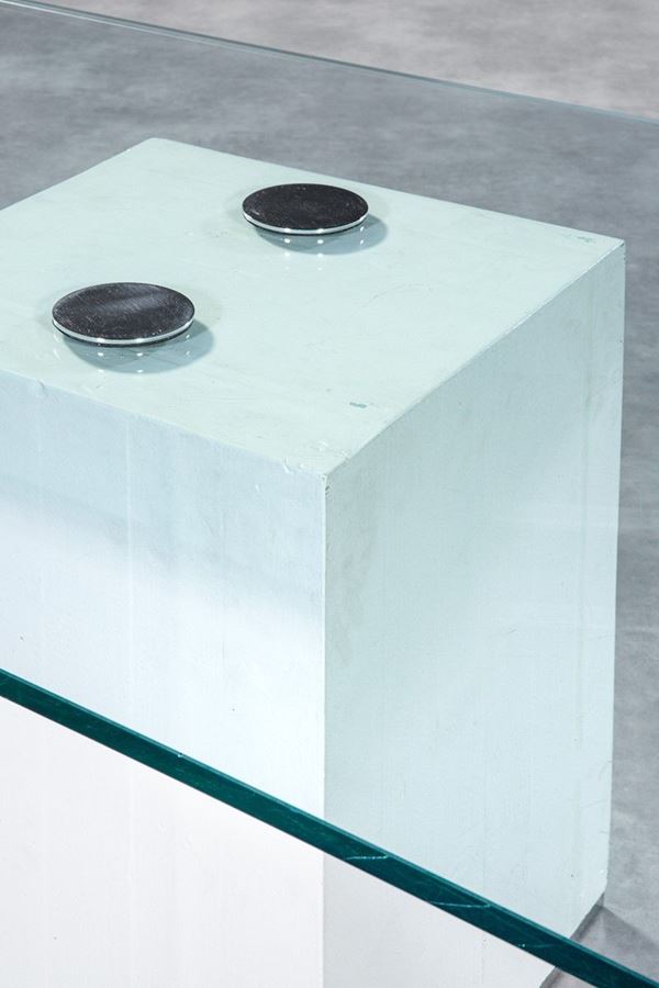 Tavolo in cemento e cristallo