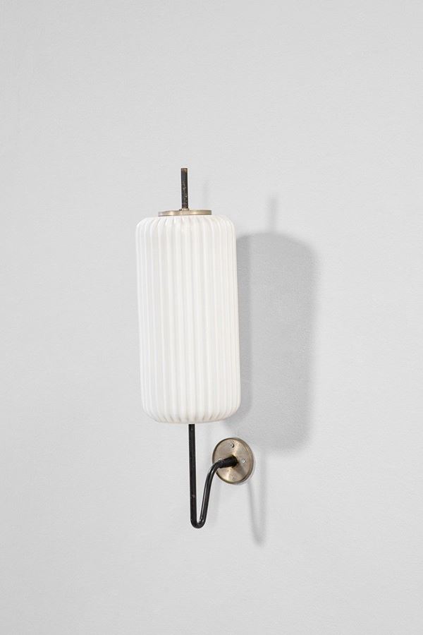 Ottone verniciato e nichelato, vetro opalino.