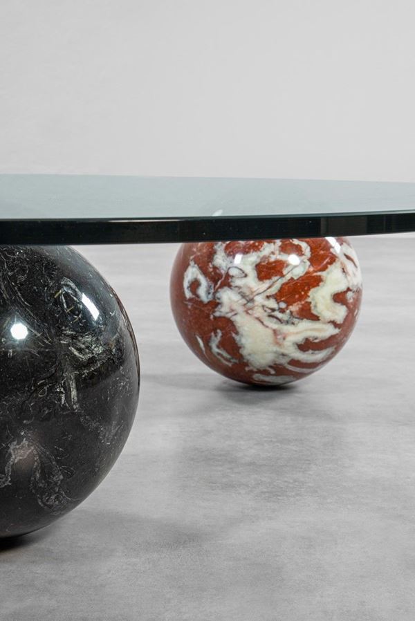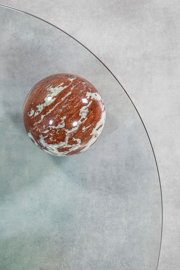 Marmo tornito, cristallo sagomato e molato.