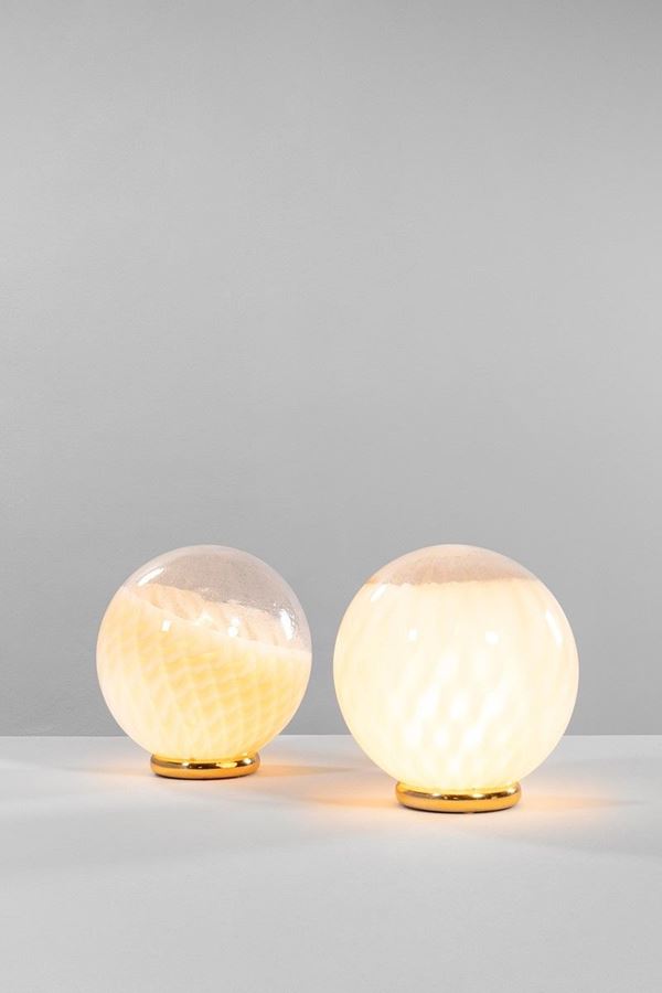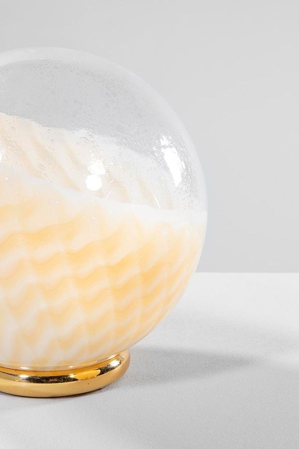 Vetro soffiato decorato nelle tonalità dell'ambra, metallo ottonato.
