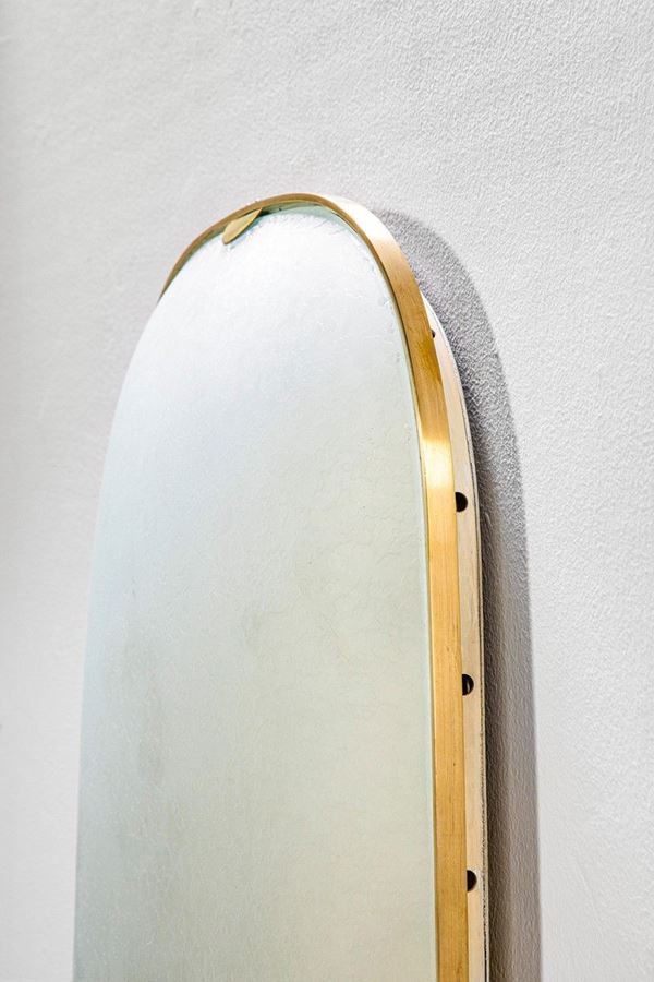 Ottone, cristallo inciso curvato.