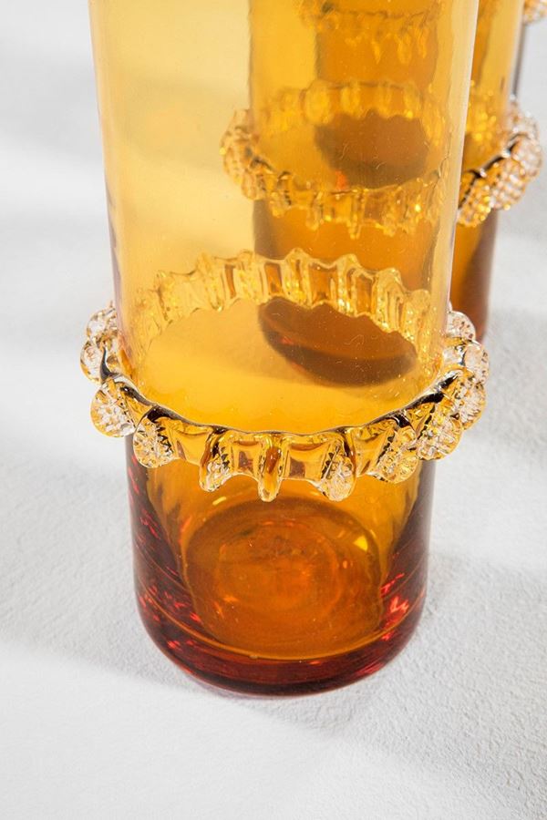 Bicchiere alto h cm 15, diam. cm 7,5; bicchiere medio h cm 14,5, diam. cm 7,5; bicchiere basso h cm 14, diam. cm 7,5