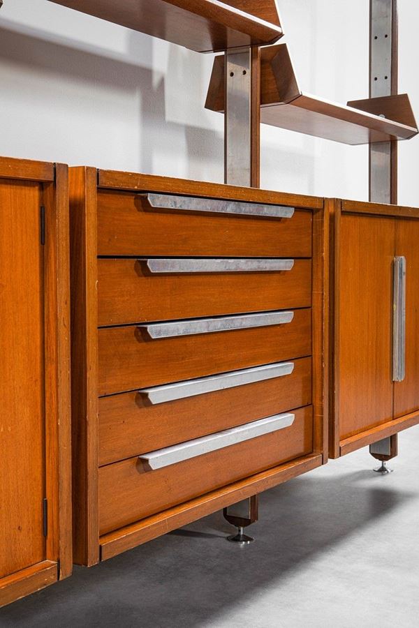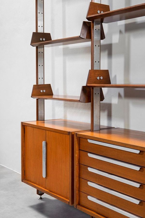 Costituita da vani a giorno, mobili contenitori ad anta battente e cassettiera.
