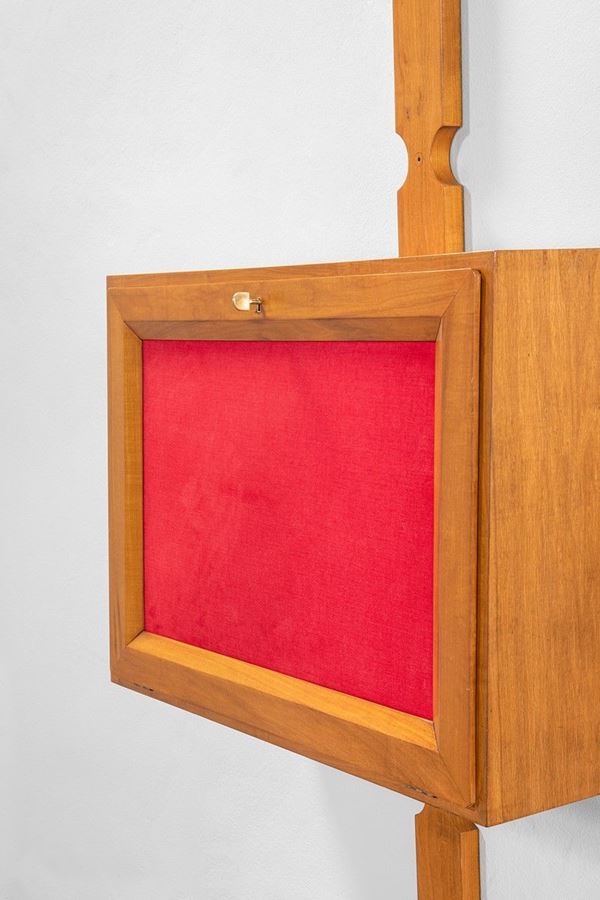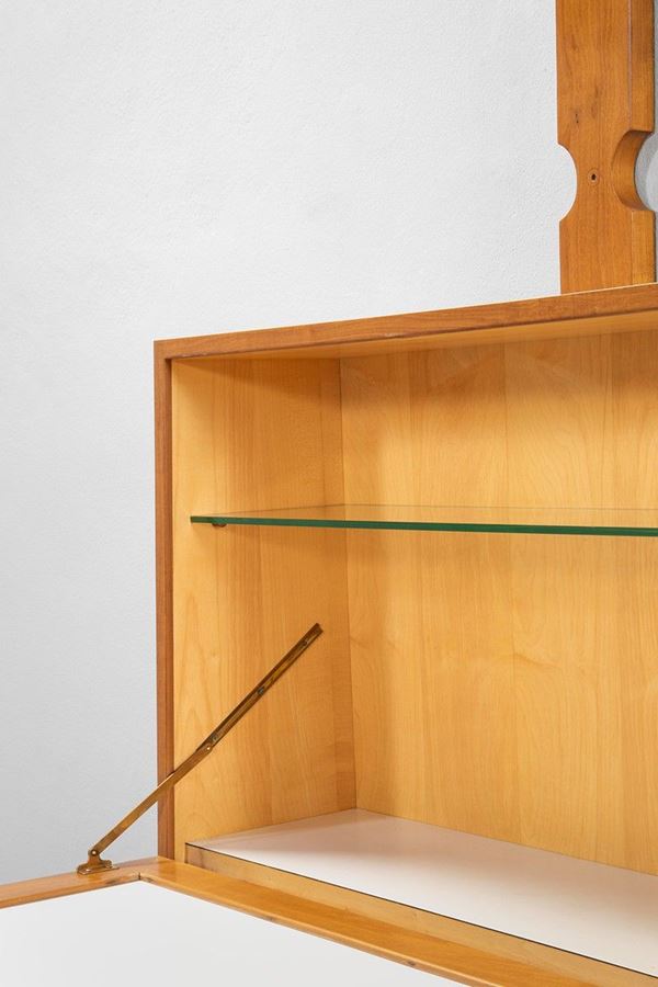 Legno, tessuto, cristallo molato, laminato plastico, ottone.