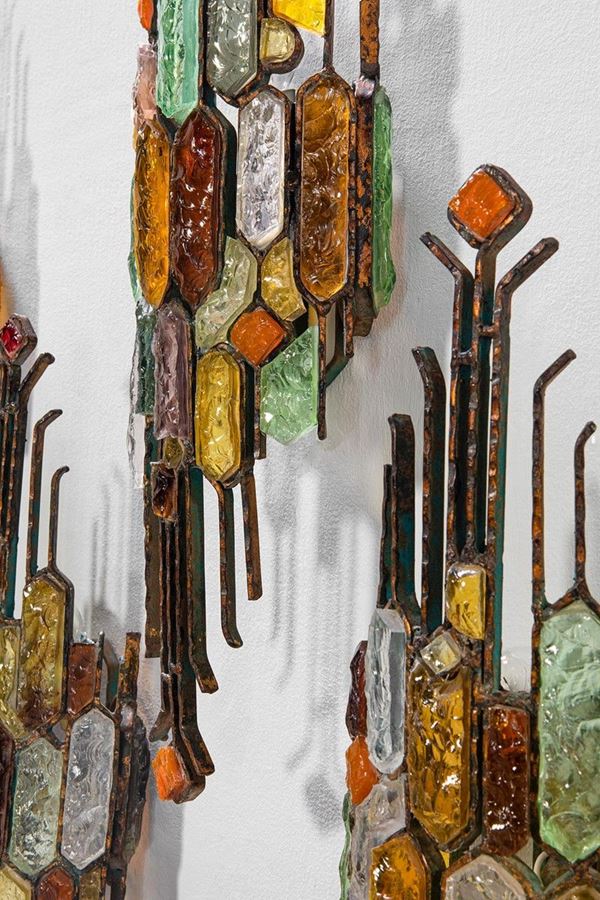 Ferro smaltato, vetro policromo.