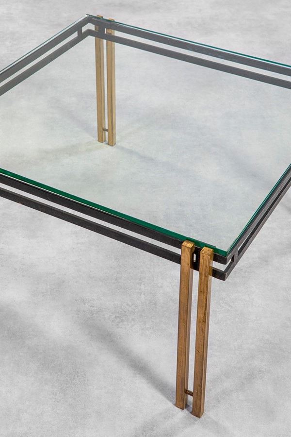 Cristallo di forte spessore molato, metallo smaltato, ottone.