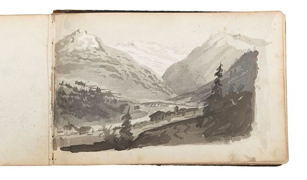 Sul foglio 61 si legge Carlo Pittara. Sono presenti tra gli altri disegni della villa Ogliani a Rivara e una veduta di Splugen datata 1856.