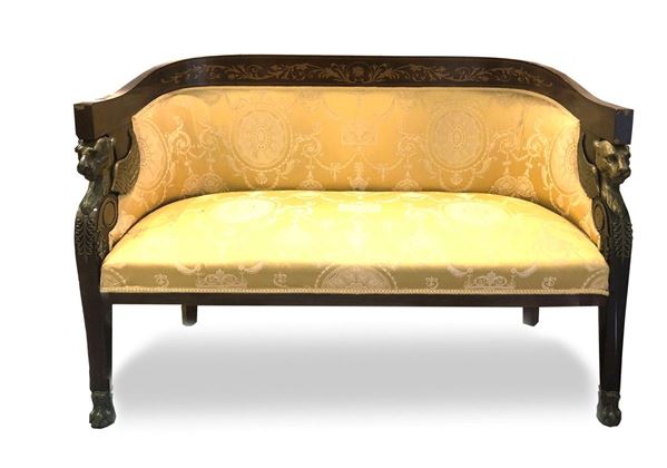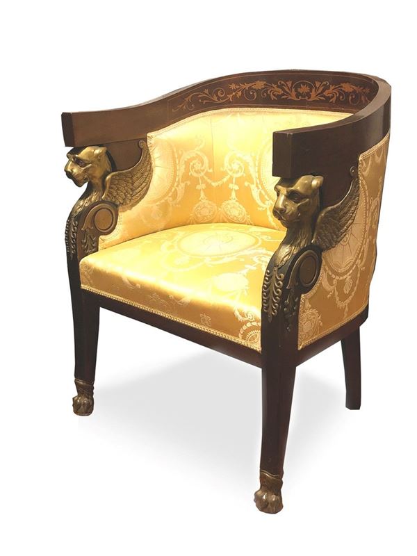Salotto costituito da un divano, due poltrone, due sedie e un tavolino di forma rotonda.