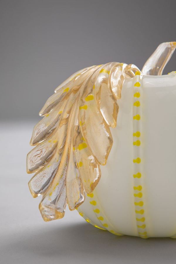 Vetro lattimo con applicazioni in vetro cristallo con foglia d’oro e giallo.