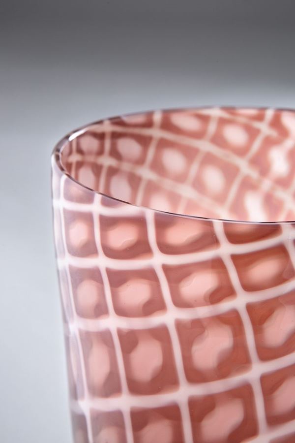 Vetro soffiato decorato internamente con formelle quadrangolari.