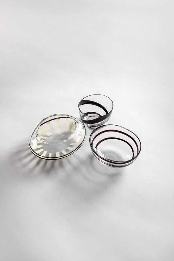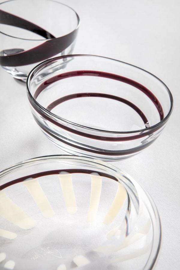 Vetro soffiato cristallo con fili neri e canne lattimo.