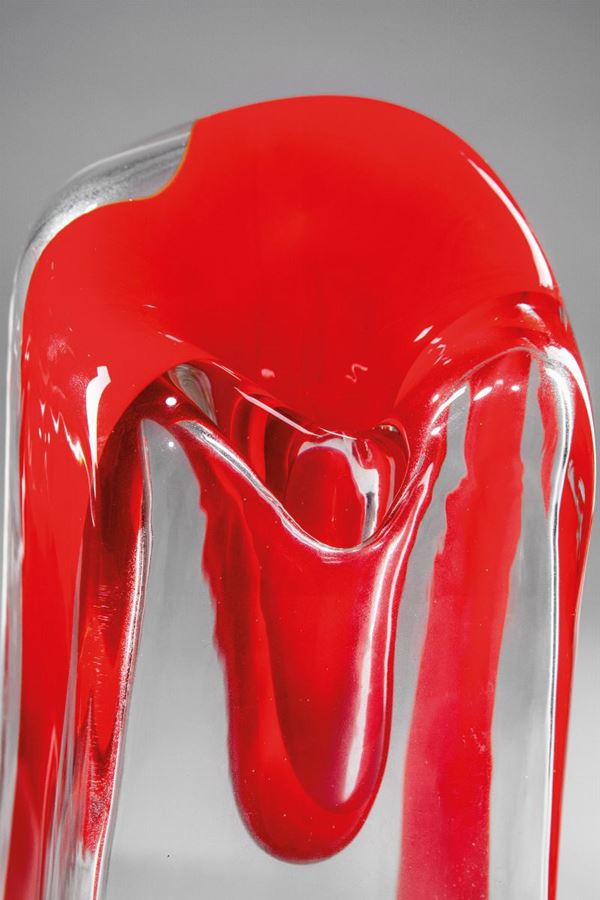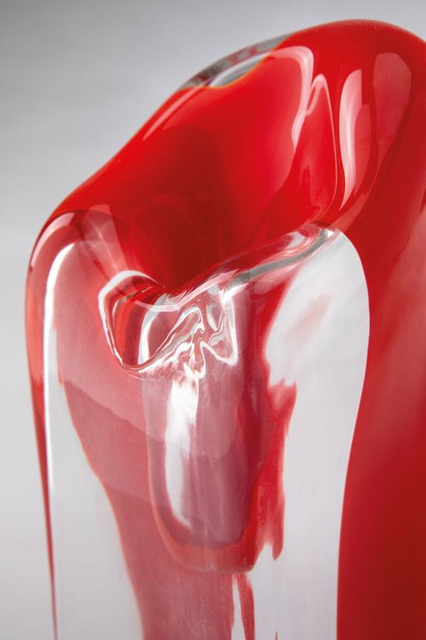 Vetro soffiato cristallo con fascia rossa trasversale.