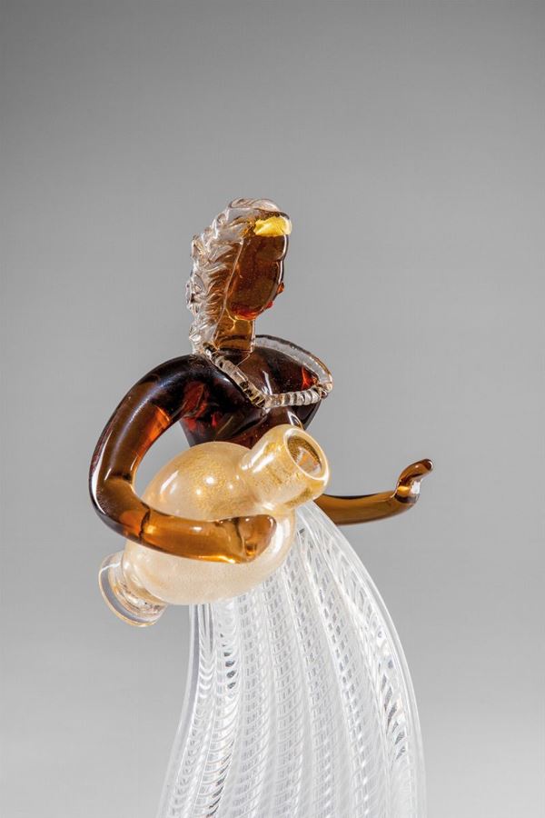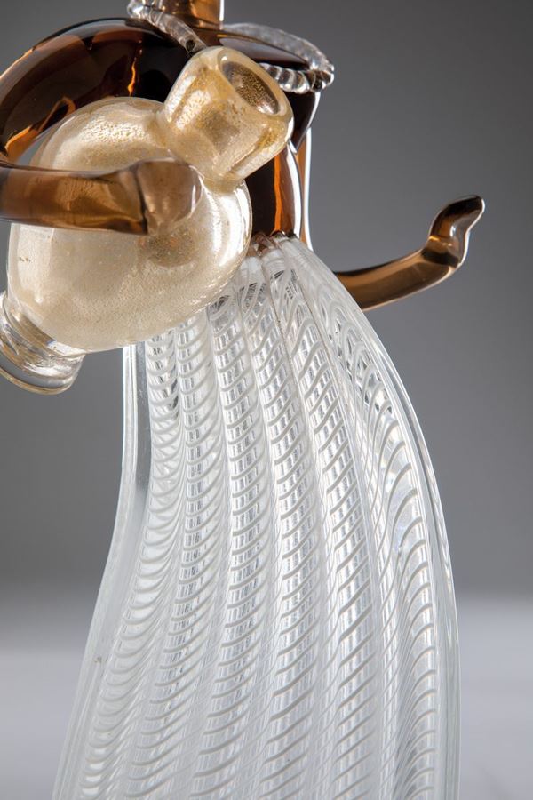 Vetro a canne lattimo, ambra e foglia d’oro.