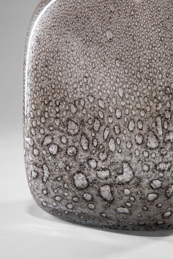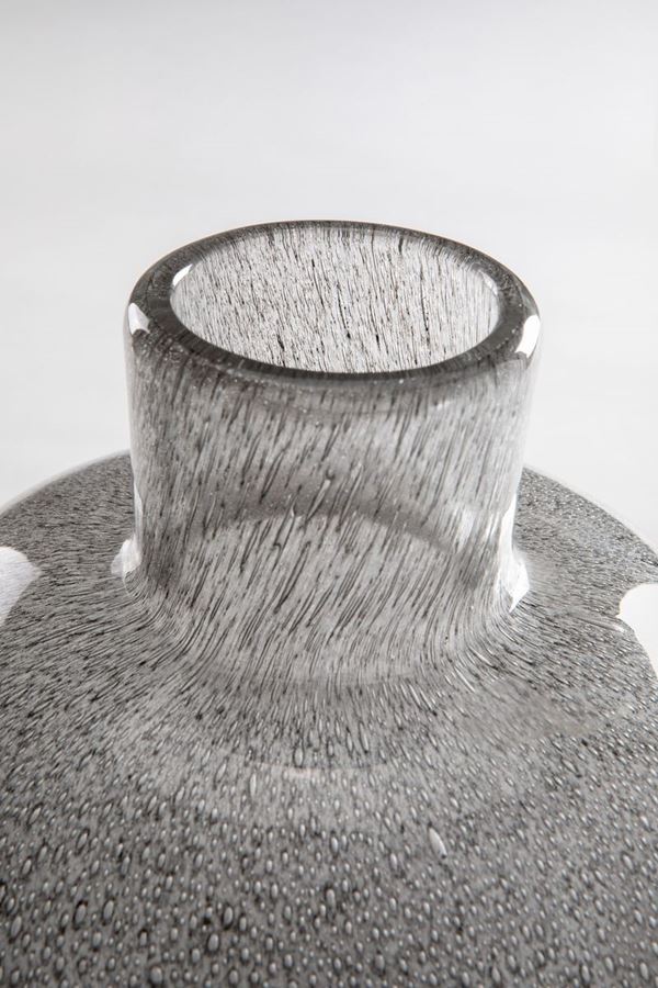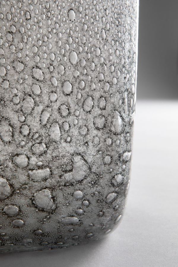 Vetro soffiato di colore grigio ottenuto con la tecnica della colorazione a caldo senza fusione.