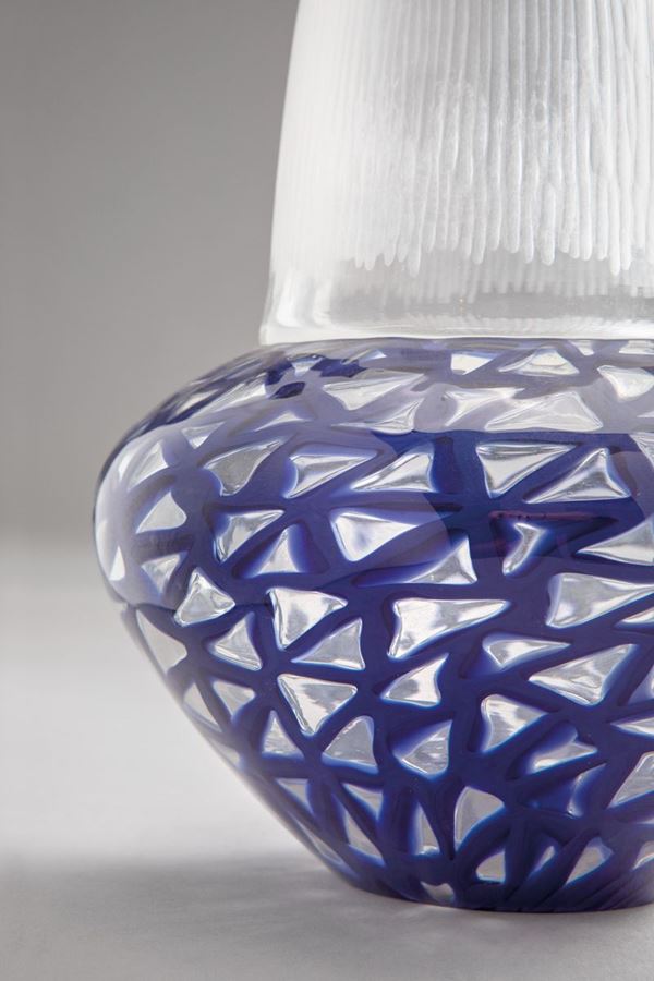 Vetro soffiato a canne piatte incrociate, parte superiore in vetro cristallo battuto e con incalmo.