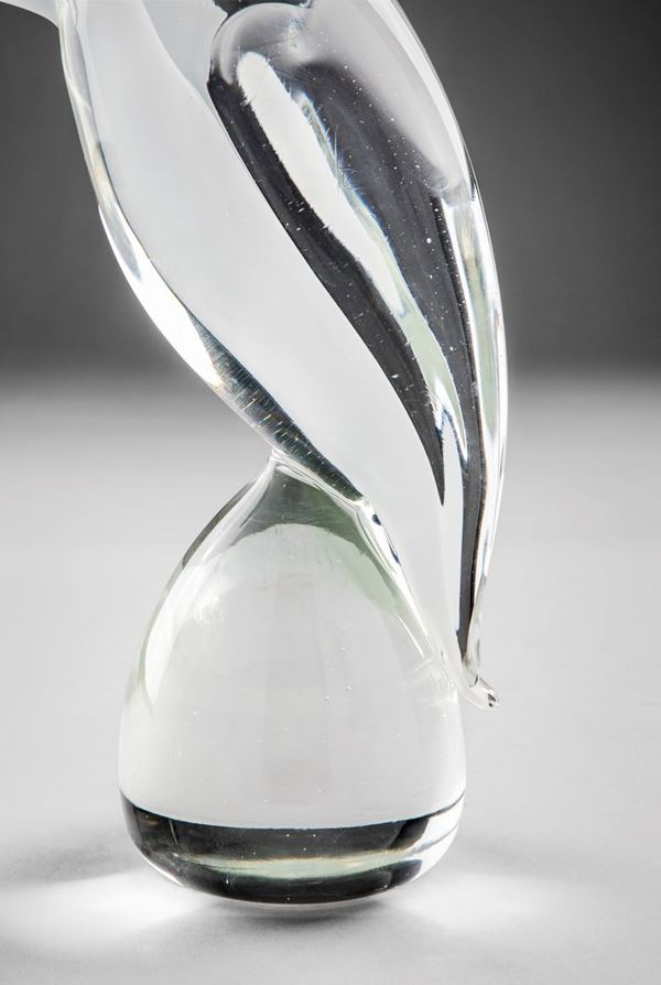 Vetro soffiato cristallo con applicazioni in vetro lattimo, base in cristallo massello.