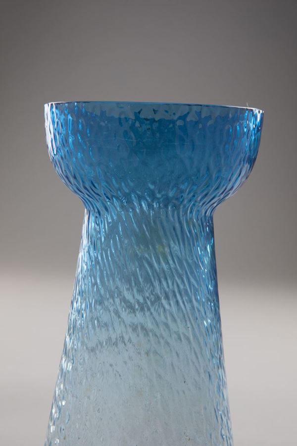 Vetro soffiato a stampo azzurro sfumato, lavorazione a ghiaccio.