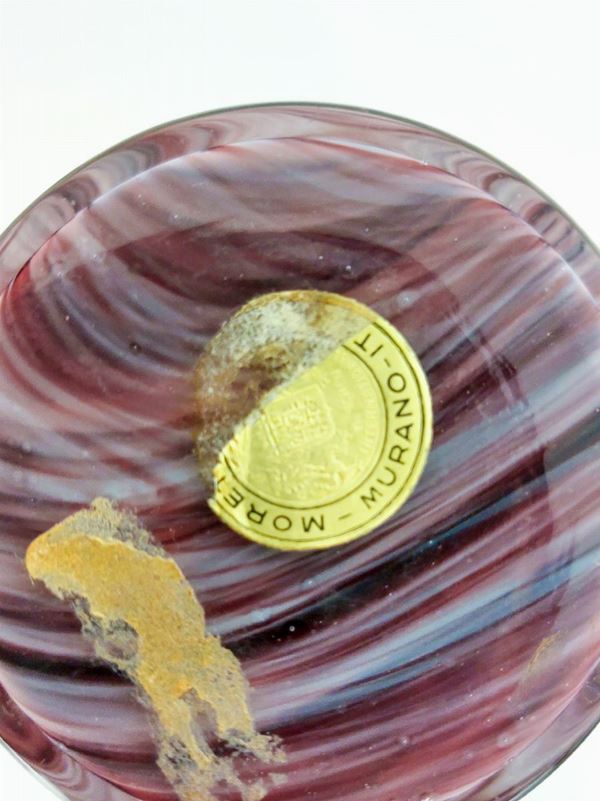 Vetro soffiato ad effetto marmorizzato nei toni del viola.