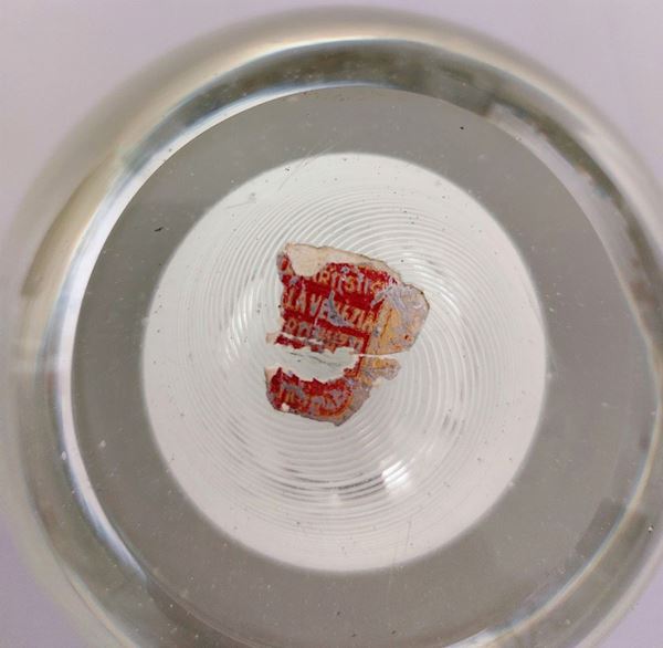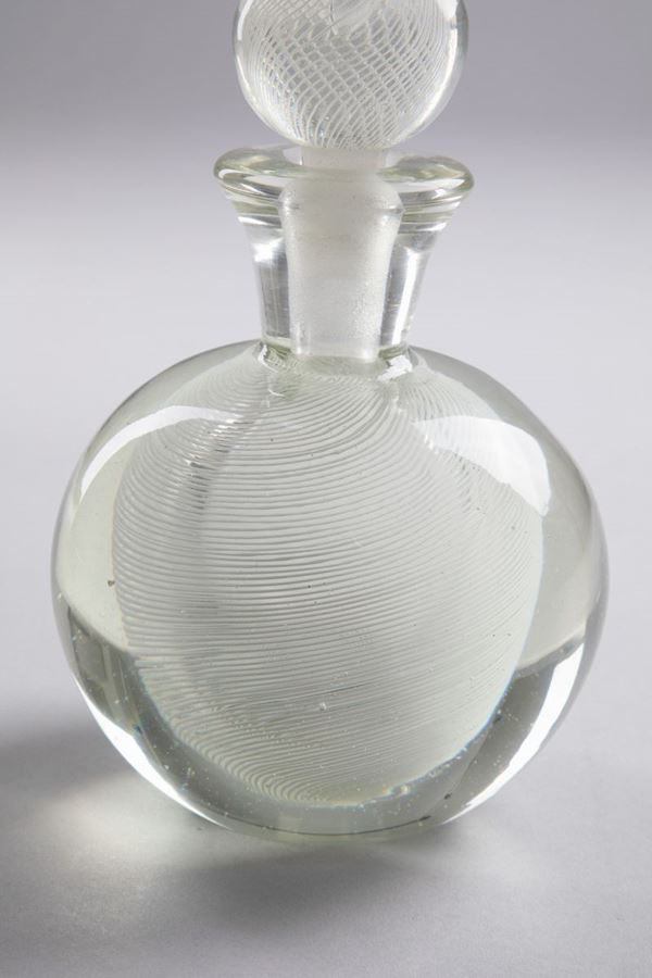 Vetro soffiato a mezza filigrana sommersa lattimo.