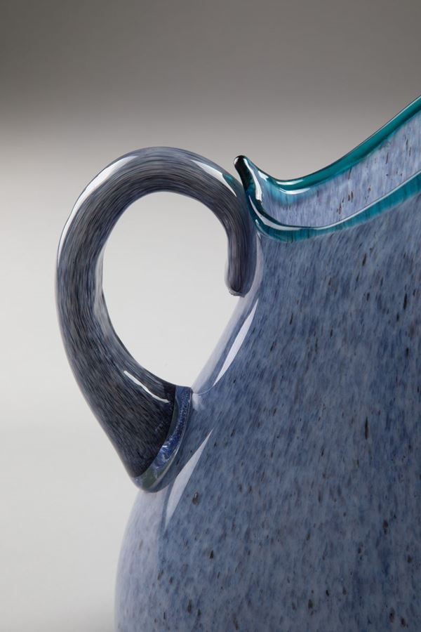 Vetro soffiato graniglia con filo verde applicato a caldo.
