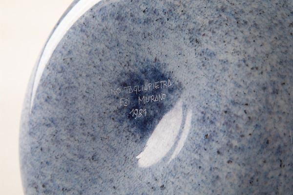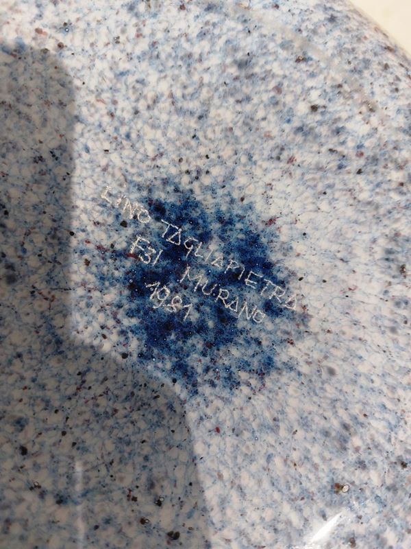 Firma incisa a punta Lino Tagliapietra F3I Murano 1981.