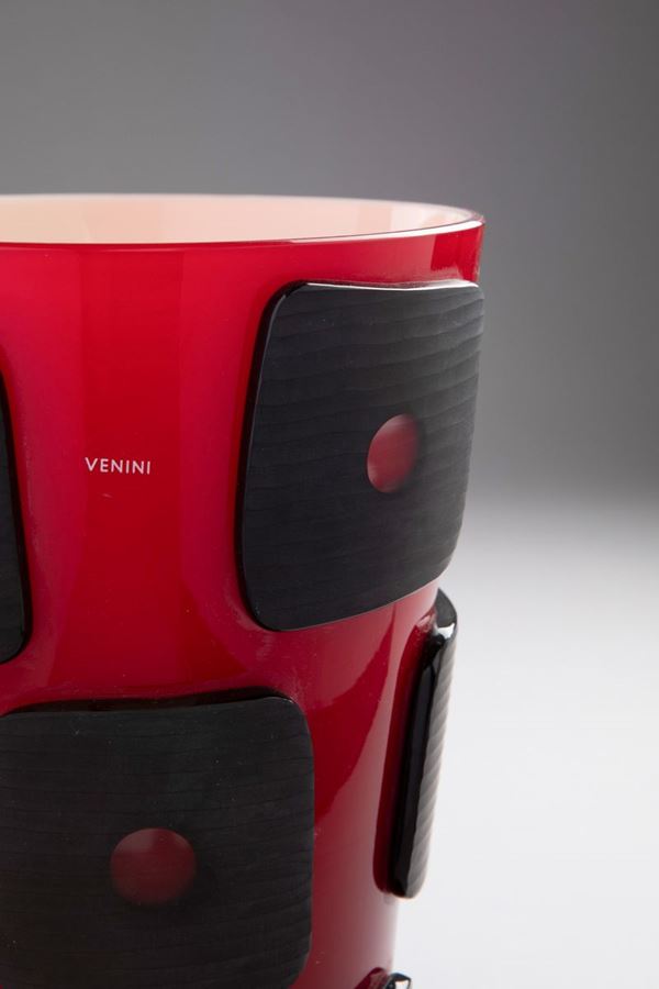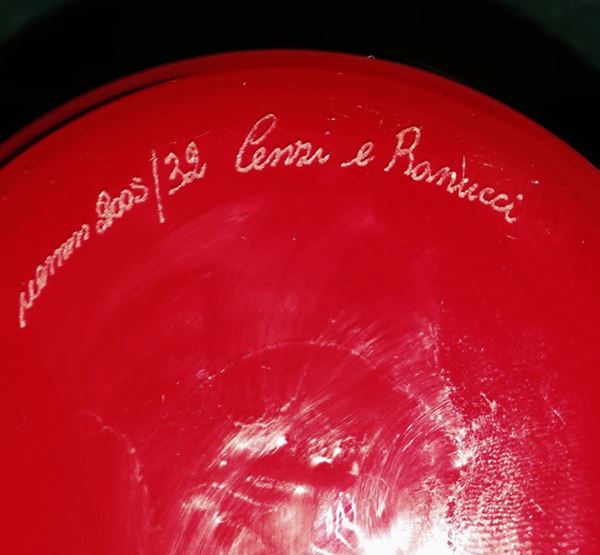 Firma incisa a punta Venini 2005/32 Cenzi e Ranucci. Etichetta adesiva Venini. Autentica Venini.