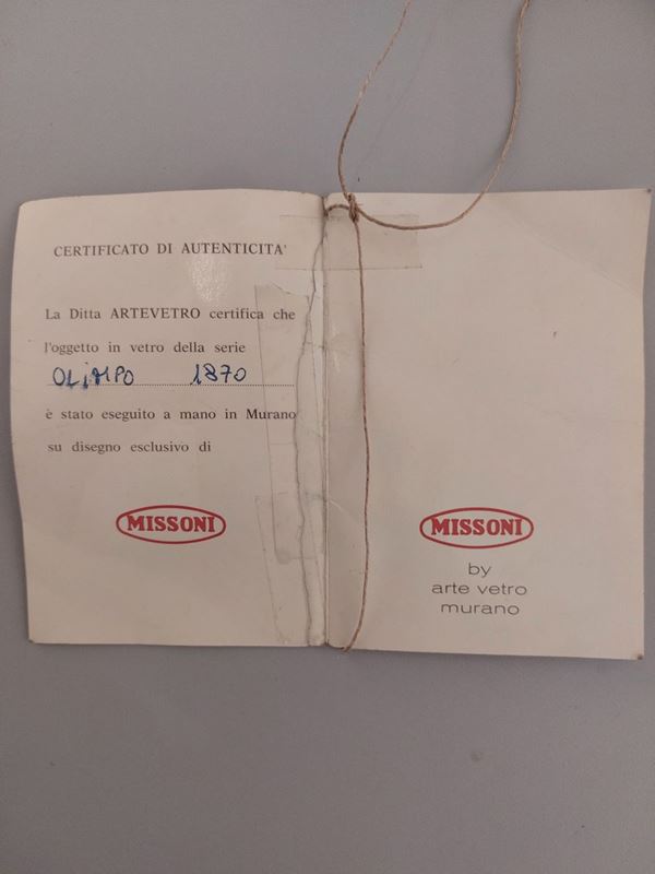 Firma incisa a punta Missoni by Arte Vetro Murano, Olimpo 1870.