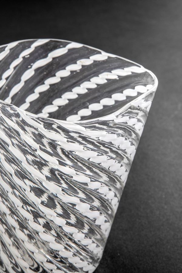 Vetro soffiato zanfirico a canne retorte lattimo.
