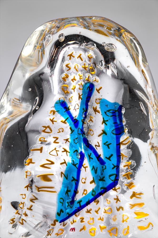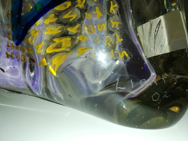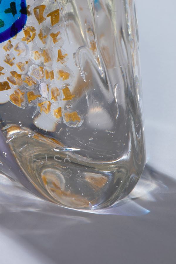 Scultura in vetro cristallo con inclusione di murrine policrome.