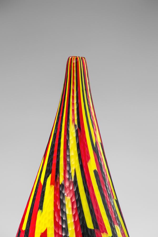 Vetro soffiato a canne piatte segmentate con superficie battuta alla mola.