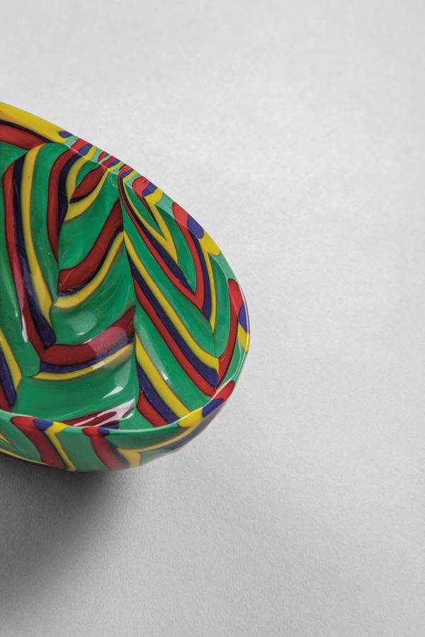 Vetro soffiato in pasta vitrea policroma.