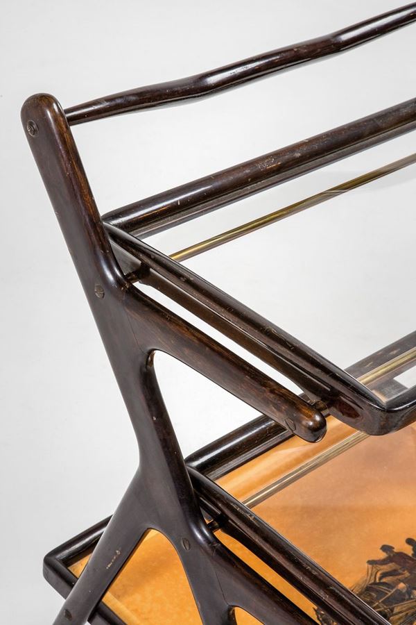 Legno ebanizzato, legno serigrafato, cristallo, ottone.