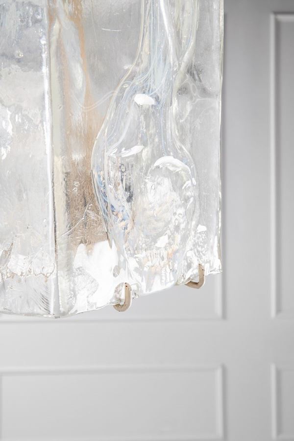 Vetro iridescente, metallo verniciato.