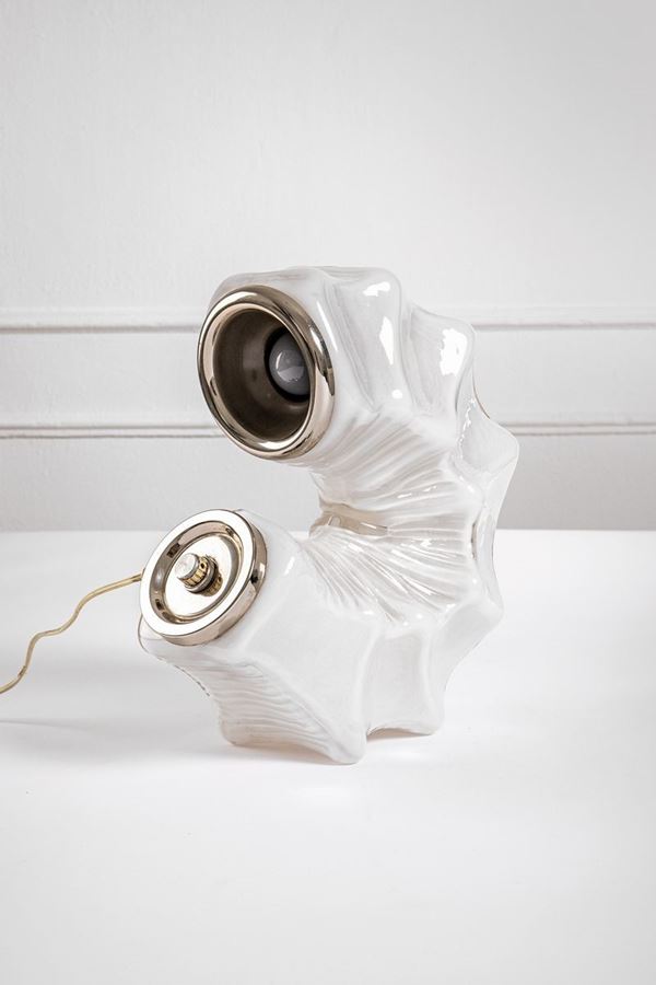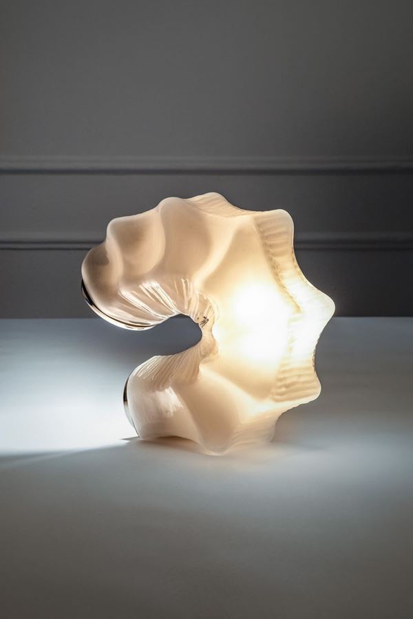 Vetro ghiaccio modellato a caldo, metallo cromato.