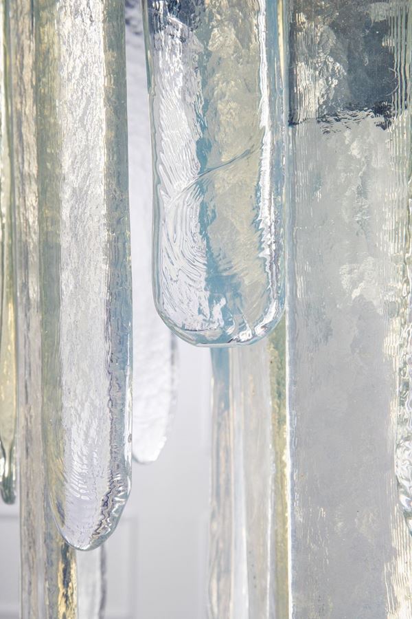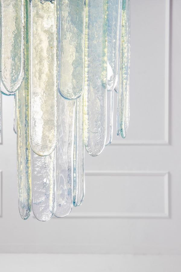 Metallo cromato, vetro iridescente con riflessi azzurri.