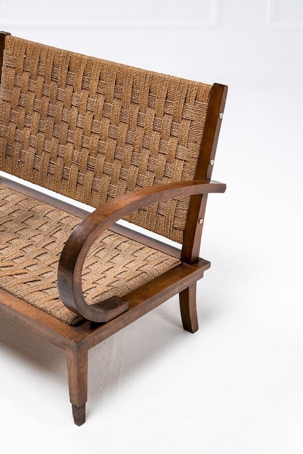 Divano in legno e corda anni '40