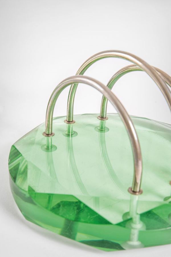 Cristallo di grosso spessore, metallo.
