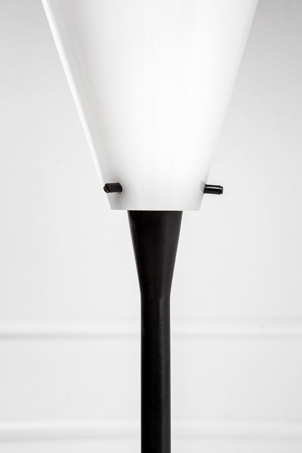 Ottone verniciato, ghisa laccata nero craquelé, metacrilato.