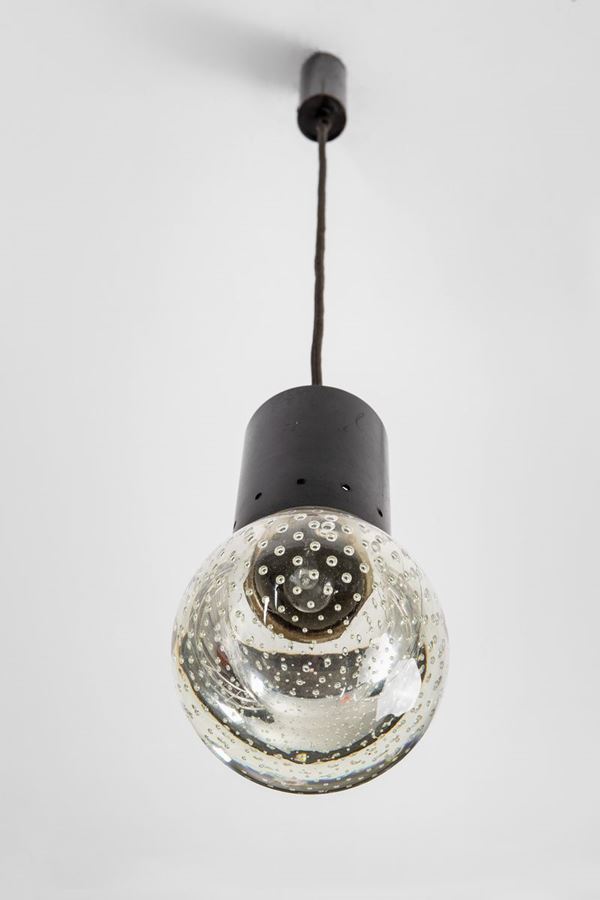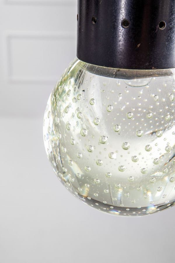Ottone, metallo verniciato, vetro Seguso a bollicine.