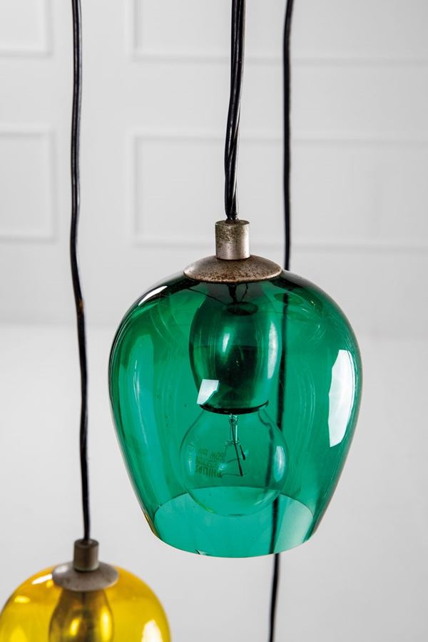 Vetro colorato trasparente, metallo verniciato, metallo nichelato.
