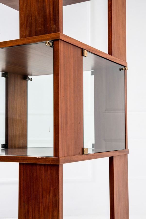 Legno lastronato, vetro, ottone.