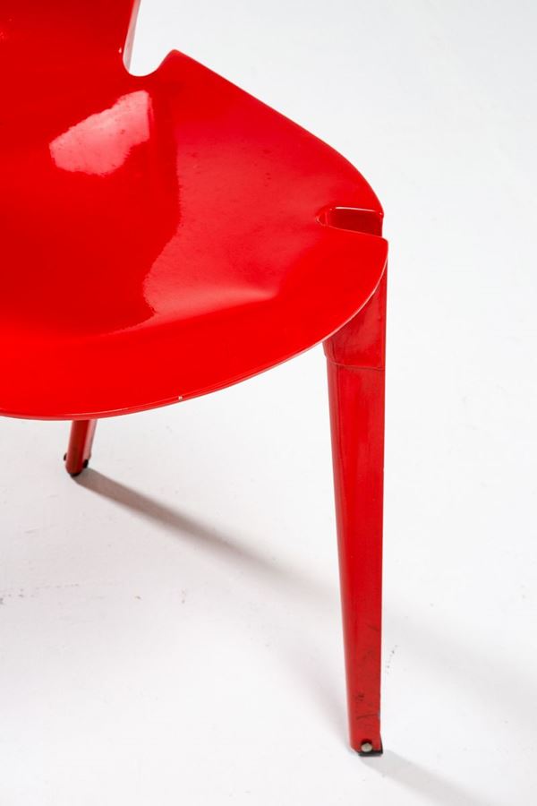 Lamiera stampata verniciata, puntali in fibra ad incastro, ricopertura in cuoio.