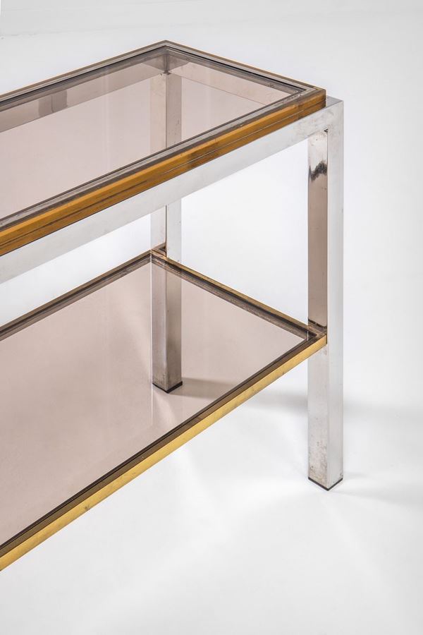 Acciaio inossidabile, ottone lucido, vassoi in vetro.