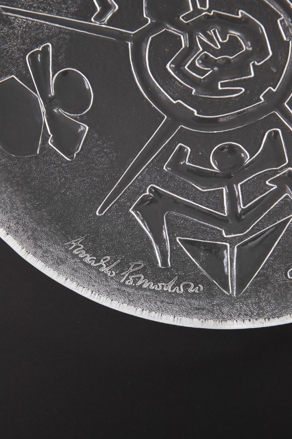 Piatto d'artistaVetro superiore sonoro.Edizione Ars D, Milano su bozzetto originale dell'artista che ne ha curato l'esecuzione.Scatola originale.Firma dell'artista lungo il bordo.