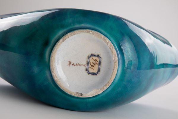 Ceramica smaltata nei toni del turchese.
