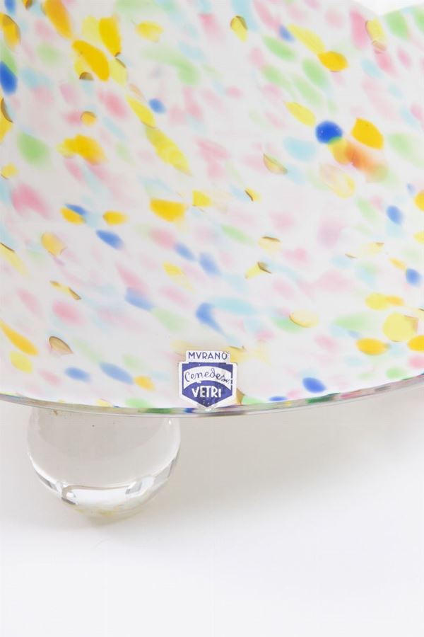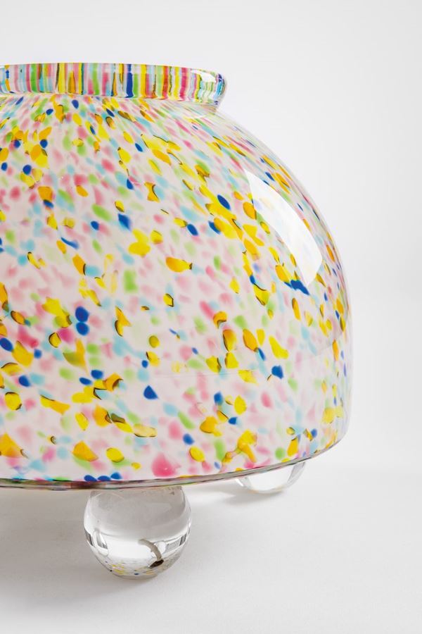 Vetro soffiato incamiciato con piccole macchie policrome.