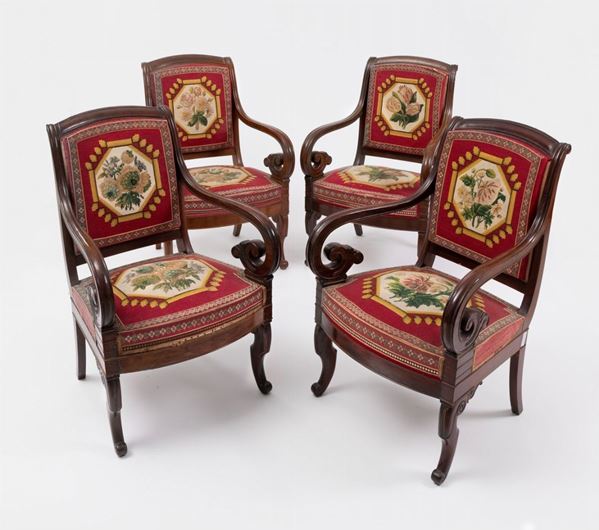 Salotto in mogano, piccolo e grosso punto - Parigi XIX sec.