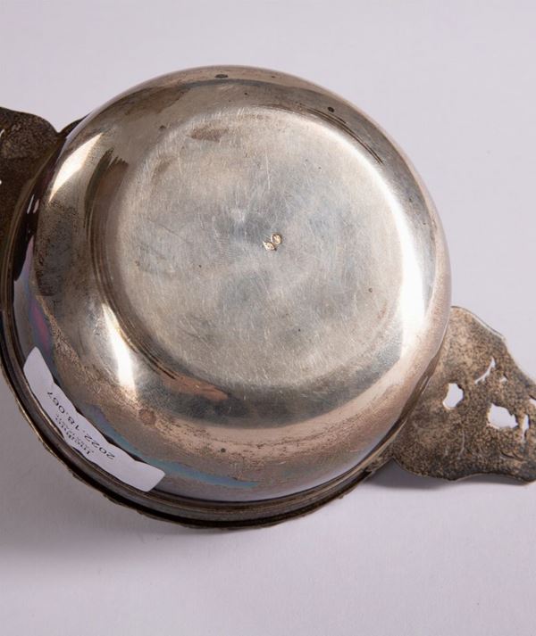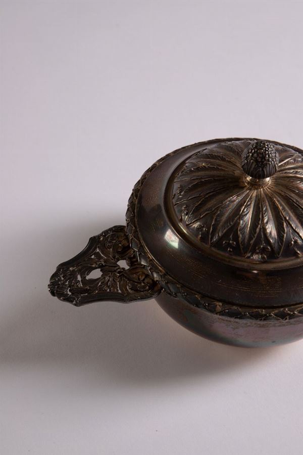 Paiola in argento cesellato e sbalzato, cimato da pigna.